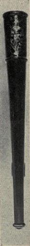 (c) In November, 1919, on the afternoon of the day on which I was to lecture on The Story of Peterloo, at the Rylands Library, Mr. W. W. Manfield, of Chorlton-cum-Hardy, brought me three interesting relics of Peterloo, which have been in the possession of his family since 1819. On the occasion of Peterloo his father and grandfather saw the crowd streaming through Salford after the catastrophe, and their curiosity led them to walk out to St. Peter’s fields. There they picked up the three relics, which have been carefully preserved ever since. One of them is a long, heavy Constable’s baton, apparently of rosewood, with the Royal Arms painted at the thicker end. (See Illustration opposite.)