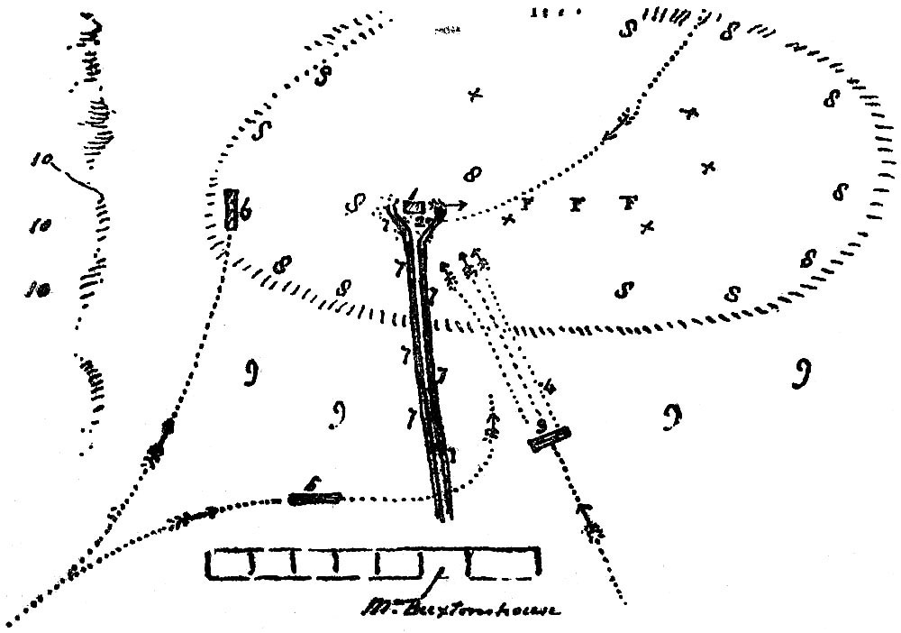 The scale of yards given on the Plan shows that Stanley’s estimate of a hundred yards as the distance from Mr. Buxton’s house to the Hustings was exactly correct.