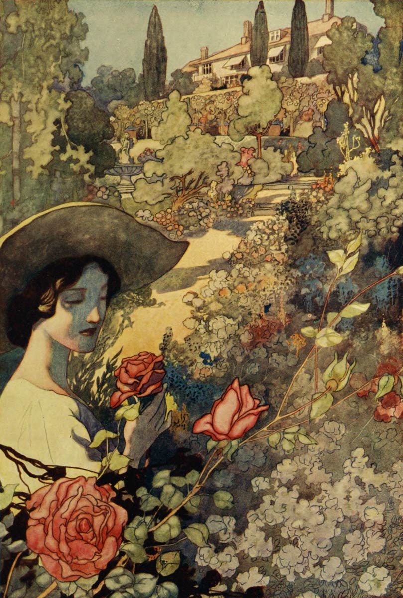 As for the lower reach—the Reserve Garden now—which in former days was a dumping-ground for horrors of broken glass, potsherds and tin cans ‹a dreary patch of weeds and couch grass withal›, it is unrecognizable. Especially this year, when, to the herbaceous border, to the espaliered apple-trees, and to the neat little turfed walks, we have 20added a Rose-Garden between screens of rustic woodwork which are to blaze in the full luxuriance of the adorable Wichuriana tribe.