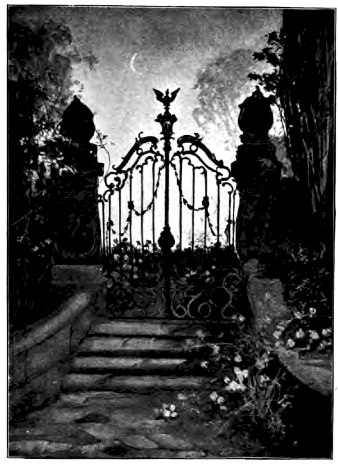 An ancient gateway, looking as though it were closed forever ... and, through the bars, the wild, imprisoned garden....