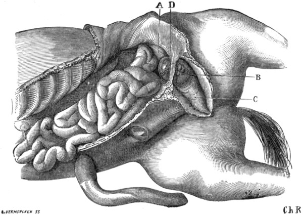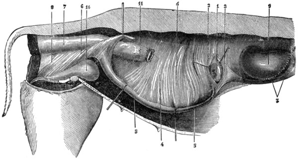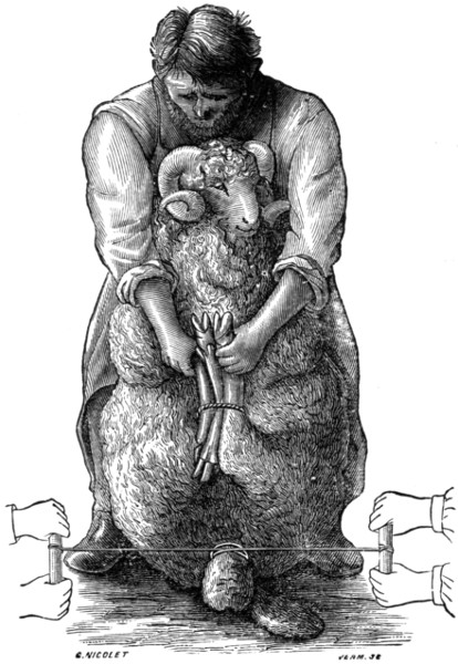 Of all the operations pertaining to the domain of Veterinary Surgery, without doubt the practitioner is most frequently called upon to perform—more especially in breeding districts—that of castration, the destruction or removal of the essential organs of generation in our domesticated animals. It is, however,[4] not nearly so often resorted to for purely surgical reasons as for purposes closely related to questions of agricultural and industrial economy, by reason of its effect upon the individuals of the various species of animals subjected to it, in order to improve their value and increase their usefulness to mankind. And that this is its practical effect is no modern discovery. As far back in antiquity as seven centuries preceding the Christian era, it was known and practised upon various animals. Of this we may find ample historical proof in the writings of Roman, Greek, and Oriental authors, where specific mention appears of the various methods employed, including the processes of excision, of crushing and of tearing. Even the castration of females was known to our less remote ancestors, the Danes having in the sixteenth century performed it on sheep, swine, cows, and even mares. The spaying of cows, however, seems to have been forgotten about the beginning of the present century, and it was not until the year 1831 that Thomas Winn, of Natchez (Louisiana), and afterwards Levrat (of Lausanne), brought it to the attention of veterinarians, as a means for the improvement of the milky secretion in cows.