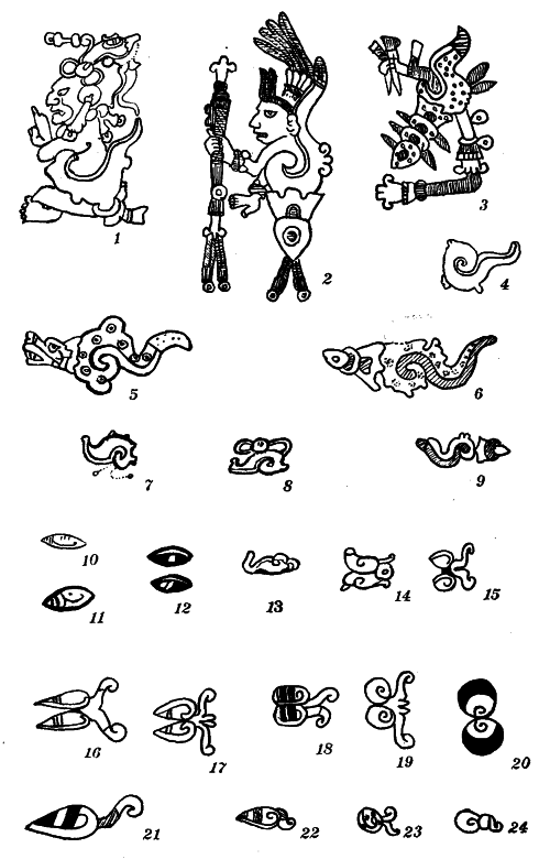 | 5. | Glyph, possibly representing a monkey, found in connection with fig. 4. |