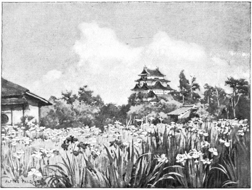 visitors now, and the fine old garden looks rather tangled and neglected, with bushes untrimmed and paths overgrown with weeds. On a steep rocky hill close by is the castle where the Daimio formerly lived; the hill is on one side protected by the lake, and on the others by a wide moat, crossed by picturesque wooden bridges, and the roads which lead to the plateau at the top are defended by more bridges over dry moats, gate-houses, and zigzag walls of large, well-fitted stones. The architecture of all these castles is very much alike, and though there are not many of them now standing, they must have abounded in the feudal times. The finest I saw was that at Nagoya; it was a good deal shaken by the last great earthquake, but is still quite sound, and the great gold dolphins on its bronze roof shine high above the rest of the city. In the short period after the introduction of Western ideas, when the craze for things European{53}