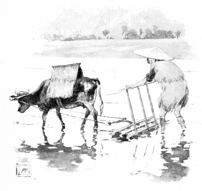 It was as yet too early in the year for any rice to be planted out. In the fertile valley through which the railway runs from Osaka to Nara some new fields were lying wet or fallow, others were being prepared by spade labor, and others again, not yet flooded, were covered with the bright green of young barley, or the strong light yellow of rape in flower.