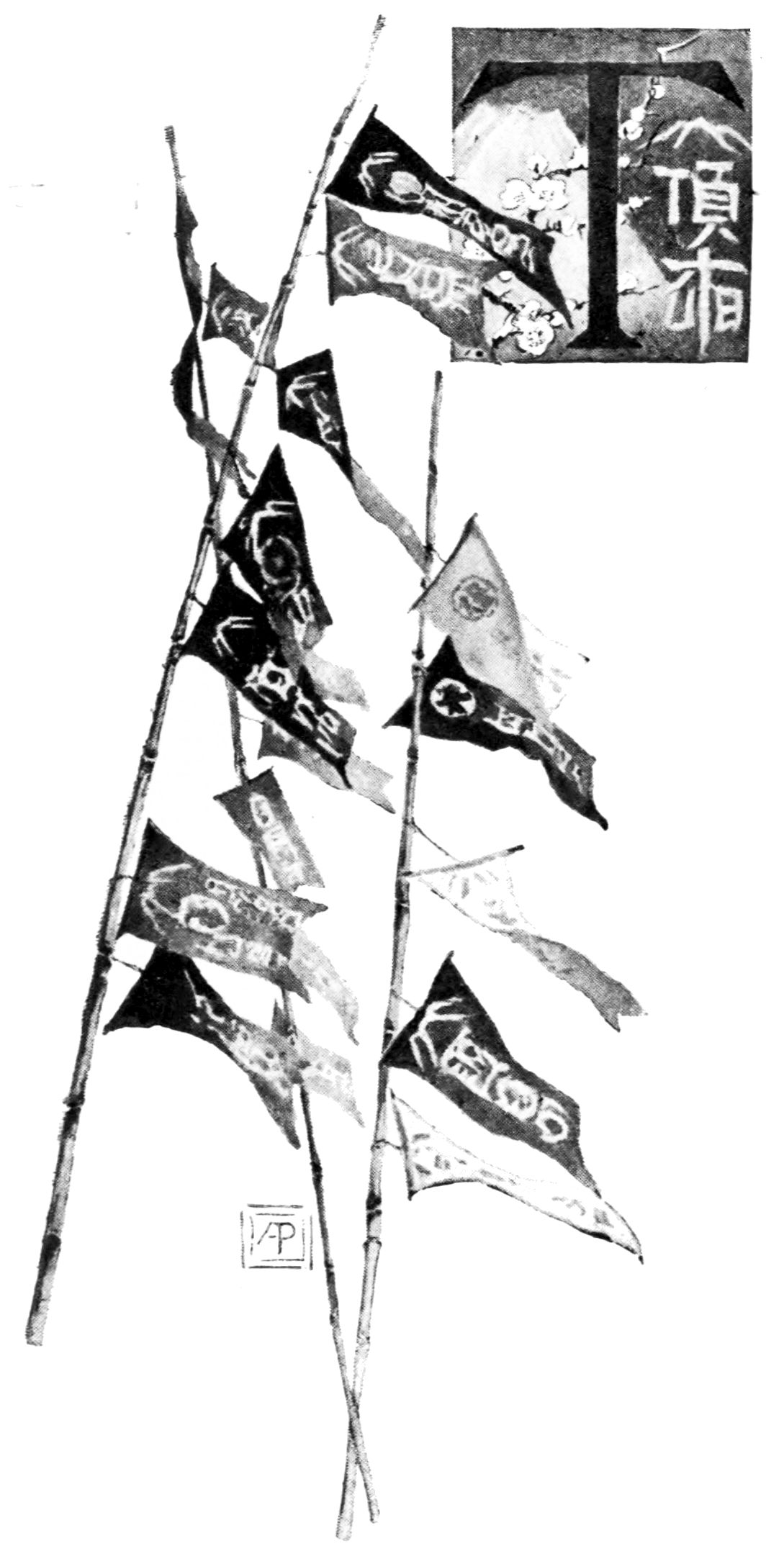 The plants which produce the most expensive teas, costing from six to eight dollars a pound, are carefully pro{48}tected by mats stretched on a framework of bamboo, so that the tender leaves may neither be scorched by the sun nor torn by the heavy rains, and there are acres of them so enclosed. It was a curious thing to look down from a little hill-top on a sea of matting which filled the whole valley from one pine-clad hill to another, its surface only broken by the ends of the supporting poles and by the thatched roofs of the drying-houses which stuck up here and there like little islands. Underneath the mats women were picking, and in every wayside cottage those who were not in the fields were busily sorting and cleaning the leaves. There are no large factories or firing-houses; each family makes its own brand of tea, labelling it with some fanciful or poetic name, such as “jewelled dew.”
