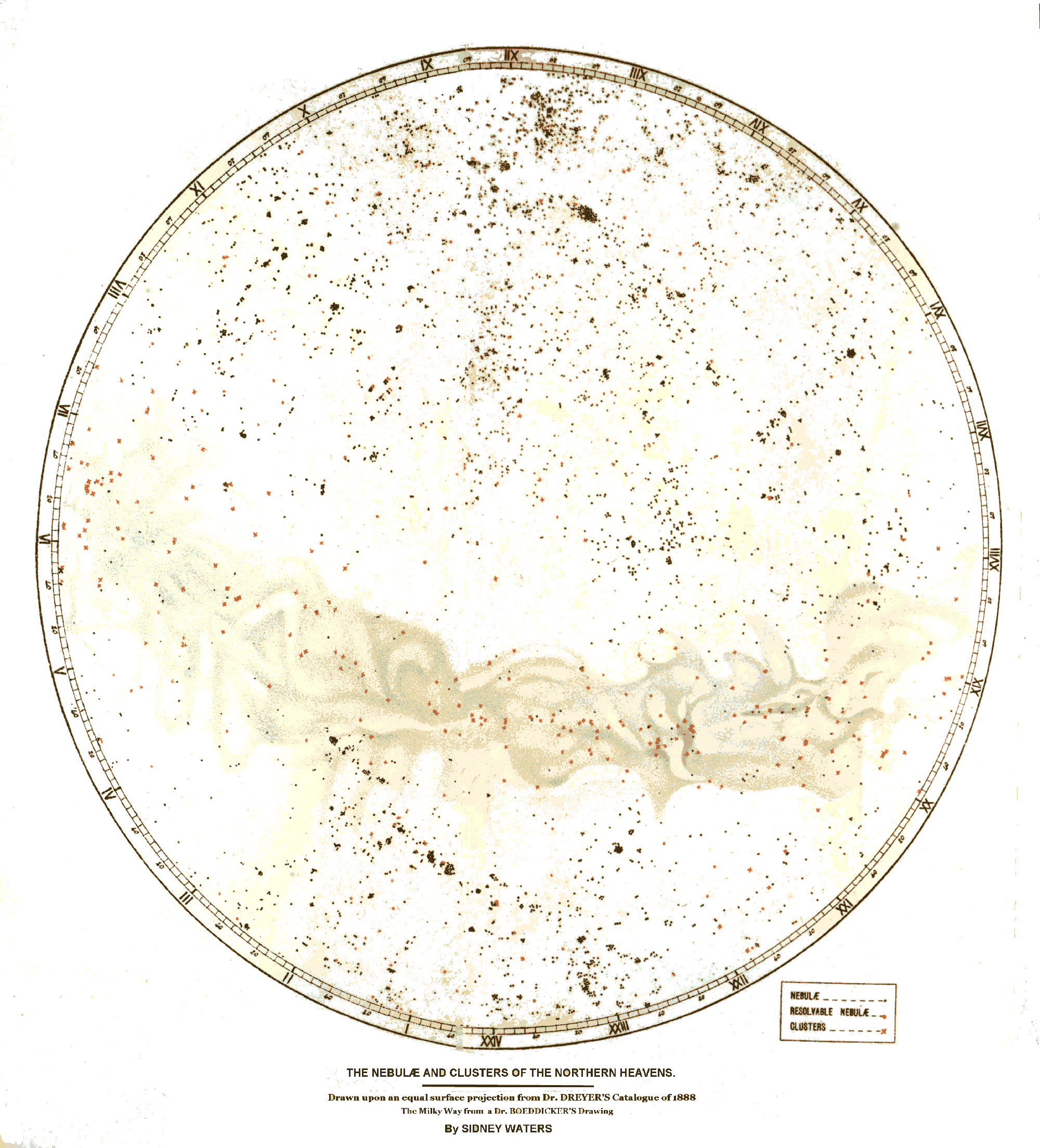 Drawn upon an equal surface projection from Dr. DREYER'S catalogue of 1888.