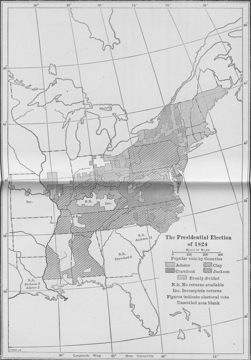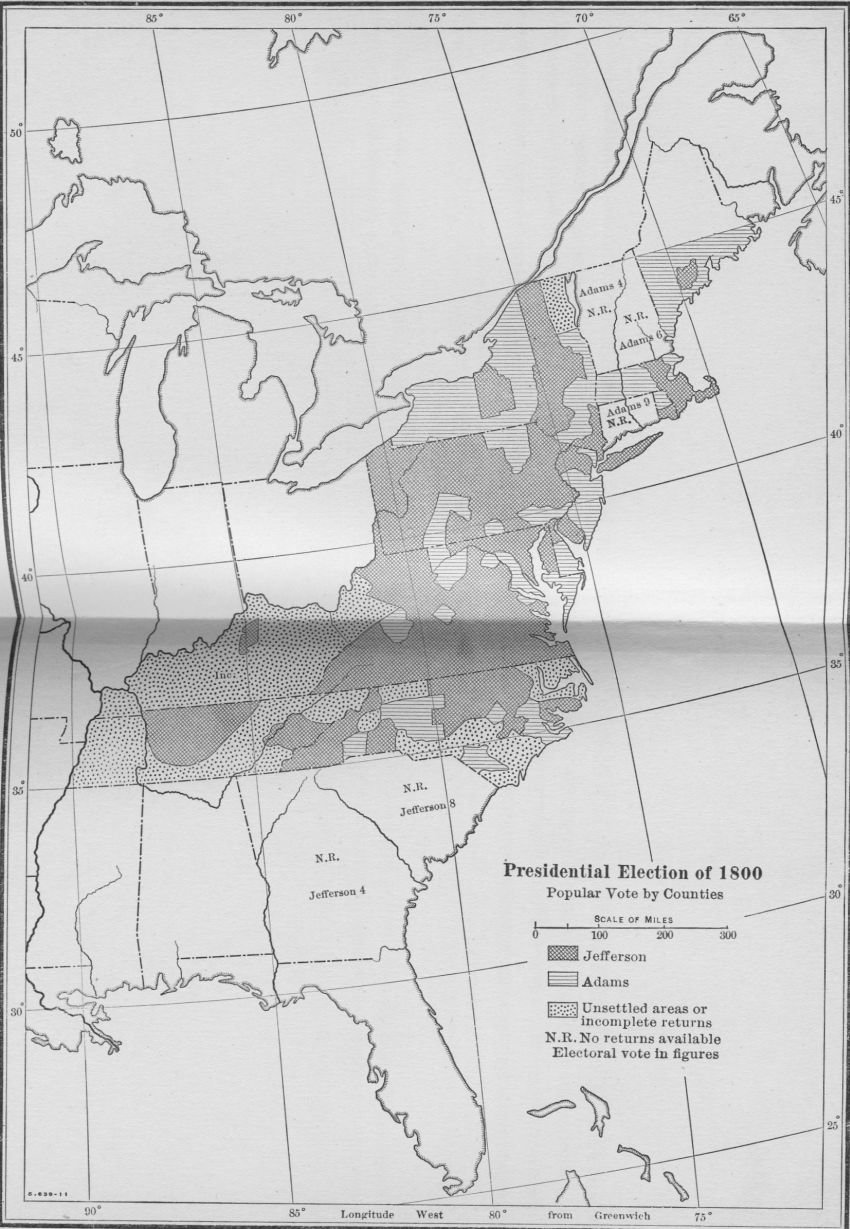 In preparation of the maps showing the popular vote in the elections of 1800 and 1824, I have drawn largely upon the data which Dr. Charles O. Paullin, of the Carnegie Institution, has generously put at my disposal. In States where the presidential electors were not chosen directly by the voters, other votes, such as those for governor, have been made the basis for determining the popular choice among party candidates for the presidency. Two of my graduate students, Miss Isabel S. Mitchell and Mr. Joseph E. Howe, have given me valuable assistance in the execution of the maps. I am under particular obligation to my colleague, Professor Stewart L. Mims, for reading critically both manuscript and proof.