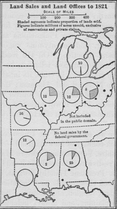 From these sales Congress expected to realize over three and a half million dollars in public securities and at the same time to satisfy military bounty warrants amounting to about eight hundred thousand acres. The actual amount realized was less than six hundred thousand dollars. The Scioto Company succeeded in disposing of rights to about three million[Pg 12] acres to a company organized in France, which in turn sold them to unsuspecting royalist emigrants. Neither company ever secured a clear title to these lands, and Congress had eventually to come to the relief of the unhappy French settlers with a donation of twenty-four thousand acres. Unforeseen circumstances prevented either the Ohio Company or Symmes from complying with the conditions of sale; and in both cases Congress consented to alter the terms of contract.