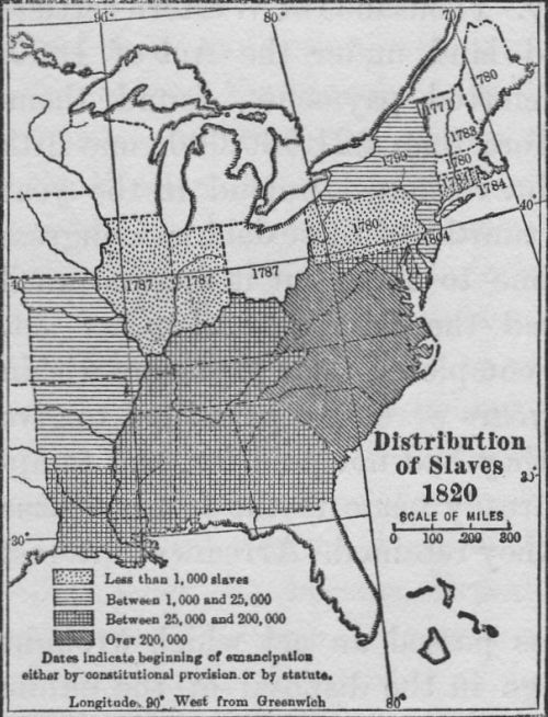 It would be a mistake, however, to suppose that[Pg 34] with this obstacle to union removed, the Constitution speedily took form. On the contrary, every proposal bristled with controversial points. The Northern commercial States demanded insistently that Congress should be given power to regulate commerce. It was, indeed, the desire of the commercial classes in all the States that Congress should be given power to pass retaliatory acts against Great Britain, but the planters of the Carolinas and Georgia feared—not without reason—that the power to regulate commerce might be used to interfere with the importation of slaves. Here, too, the spirit of compromise prevailed. The power was granted, but the importation of such persons as the States thought proper to admit was not to be prohibited before the year 1808.
