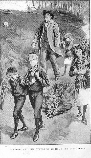 In this way the doctor proved himself a friend in need for the second time, and now Nancy and Pennie were loud in his praise as well as the boys. He knew so much about everything, as well as about Latin and Greek and museums. Where to find the best sort of ivy, how much would be wanted for the arch, and finally, how to get the bundle of ever-greens down the hill. He even produced out of one baggy pocket a ball of stout twine, and showed the children how to bind it all together and pull it along after them. He was the most delightful person to go out with. Miss Grey sometimes said “Not so much noise Nancy,” or, “Remember you are a young lady;” but on this occasion Nancy made as much noise as she liked, scrambled about among the bushes, tore her frock, and enjoyed herself to the full.