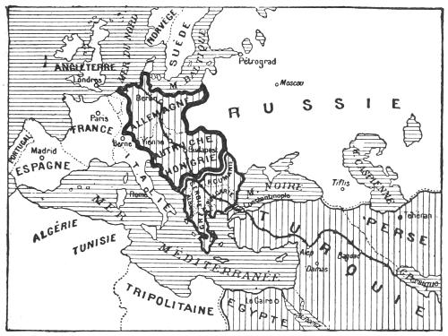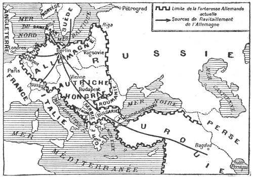 It is evident that these three calamitous mistakes have entailed a considerable prolongation of the struggle and allowed Germany to build up the immense fortress which extends from Dunkirk on the north to Egypt on the south, and from the south of Riga to Bagdad (see the map on p. 72). In order to overthrow the mighty walls of this formidable fortress, the Allies must consent to sacrifices much greater and more prolonged than would have been necessary if the mistakes now generally acknowledged had not been committed. These sacrifices the Allied peoples accept with a devotion and heroism which will win the imperishable admiration of posterity. But just because the faults committed have lengthened the duration of the struggle, the leaders of the Allied countries are in duty bound to do everything they can to accelerate a complete victory. That victory would be considerably hastened by the accession of the forces, whether[230] economic or military, of the still neutral countries which, though they are even yet not fully aware of it, would be directly endangered by the success of the Pangerman plan.