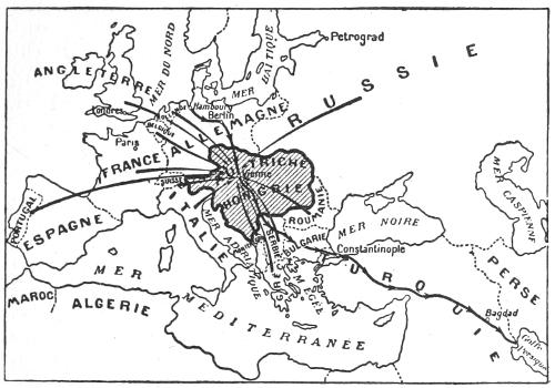 To recapitulate, a series of deductions, all based on acknowledged facts and all easily verifiable, leads to the conclusion that the formidable problem with which German aggression has confronted the civilized world is summed up in the solution of the Austro-Hungarian question, because that solution, which can be worked out without prejudice to the legitimate interests of the German people (see Chapter VI § 111), is the only means of putting an[235] end to the Hohenzollern plan of universal domination, founded on the scheme “from Hamburg to the Persian Gulf.”