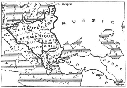 In order rapidly to secure practical results from a convincing propaganda, it is necessary to define very clearly what in the vast welter of the present struggle is the point of vital interest common to all the States of the World. As I have shown in the course of this book, what would provide Germany with the means of establishing her universal dominion would be the accomplishment, whether direct, or indirect, of her scheme “from Hamburg to the Persian Gulf.” On the other hand, I believe I have demonstrated that to prevent the accomplishment of that scheme it is enough, but it is necessary, that the Latin and Slav peoples of Austria-Hungary should be freed, once for all, from the yoke which Germany has imposed on them through the opportunity given her by the war. For if the majority of these peoples were to be combined as a State in place of Austria-Hungary, probably in a federal form, there would at once be set up in Central[231] Europe an immovable barrier which would ensure the world against any revival of Pangerman aggression (see the map on p. 43). On the other hand, if the independence of the Slav peoples of Austria-Hungary were not secured against Berlin, the extension of Prussian militarism to the Balkans and Turkey would be inevitable; the Allied peoples would have made all their unheard-of sacrifices in vain, and the struggle against Prussianism would be bound to continue.