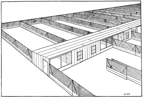 Fig. 15—Illustrates double yards for a continuous poultry house.