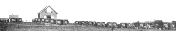 Some of the houses are built of iron advertising signs, and have the common double-pitch roof; in some cases the sides are made of burlap tacked on to furring, which is nailed to the posts. This burlap is then painted with crude oil, distillate, and Venetian red, to make it wind-proof. Lumber is very expensive in that section, and the burlap, when water-proofed, makes a cheap and quite desirable house.