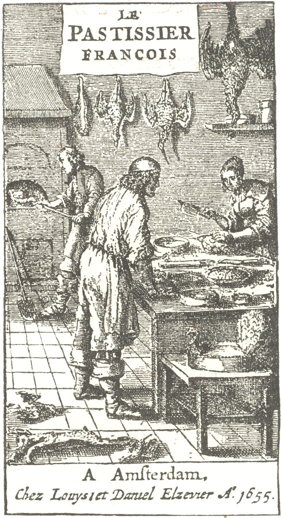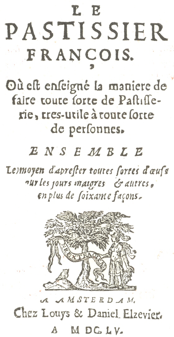 Let us now assume that the amateur quite understands what a proper Elzevir should be: tall, clean, well bound if possible, and of the good date. But we have still to learn what the good dates are, and this is matter for the study and practice of a well-spent life. We may gossip about a few of the more famous Elzevirs, those without which no collection is complete. Of all Elzevirs the most famous and the most expensive is an old cookery book, “‘Le Pastissier François.’ Wherein is taught the way to make all sorts of pastry, useful to all sorts of persons. Also the manner of preparing all manner of eggs, for fast-days, and other days, in more than sixty fashions. Amsterdam, Louys, and Daniel Elsevier. 1665.” The mark is not the old “Sage,” but the “Minerva” with her owl. Now this book has no intrinsic value any more than a Tauchnitz reprint of any modern volume on cooking. The ‘Pastissier’ is cherished because it is so very rare. The tract passed into the hands of cooks, and the hands of cooks are detrimental to literature. Just as nursery books, fairy tales, and the like are destroyed from generation to generation, so it happens with books used in the kitchen. The ‘Pastissier,’ to be sure, has a good frontispiece, a scene in a Low Country kitchen, among the dead game and the dainties. The buxom cook is making a game pie; a pheasant pie, decorated with the bird’s head and tail-feathers, is already made. [12]