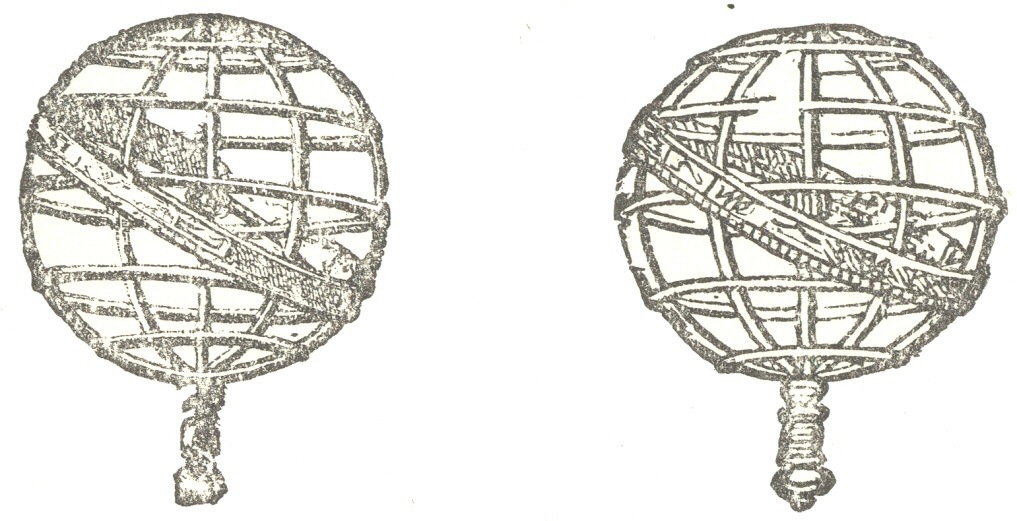 Though Elzevirs have been more fashionable than at present, they are still regarded by novelists as the great prize of the book collector. You read in novels about “priceless little Elzevirs,” about books “as rare as an old Elzevir.” I have met, in the works of a lady novelist (but not elsewhere), with an Elzevir ‘Theocritus.’ The late Mr. Hepworth Dixon introduced into one of his romances a romantic Elzevir Greek Testament, “worth its weight in gold.” Casual remarks of this kind encourage a popular delusion that all Elzevirs are pearls of considerable price. When a man is first smitten with the pleasant fever of book-collecting, it is for Elzevirs that he searches. At first he thinks himself in amazing luck. In Booksellers’ Row and in Castle Street he “picks up,” for a shilling or two, Elzevirs, real or supposed. To the beginner, any book with a sphere on the title-page is an Elzevir. For the beginner’s instruction, two copies of spheres are printed here. The second is a sphere, an ill-cut, ill-drawn sphere, which is not Elzevirian at all. The mark was used in the seventeenth century by many other booksellers and printers. The first, on the other hand, is a true Elzevirian sphere, from a play of Molière’s, printed in 1675. Observe the comparatively neat drawing of the first sphere, and be not led away after spurious imitations.