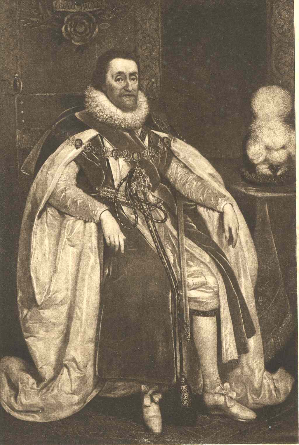 James VI. From the picture painted by Paul Van Somer (1621) now in the National Portrait Gallery |