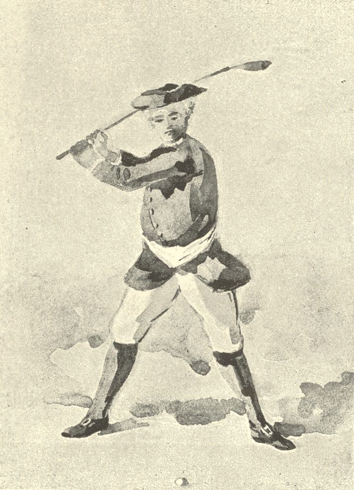 The portrait in the frontispiece, copied by Mr. T. Hodge from an old painting in the Club at St. Andrews, is believed to represent the Baron Bradwardine addressing himself to his ball.