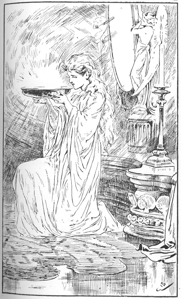 Then he knelt down and thanked her, and she murmured strange words of blessing which he did not understand; but her face was p. 184grave and kind, and he thought of Queen Rosalind, his wife.