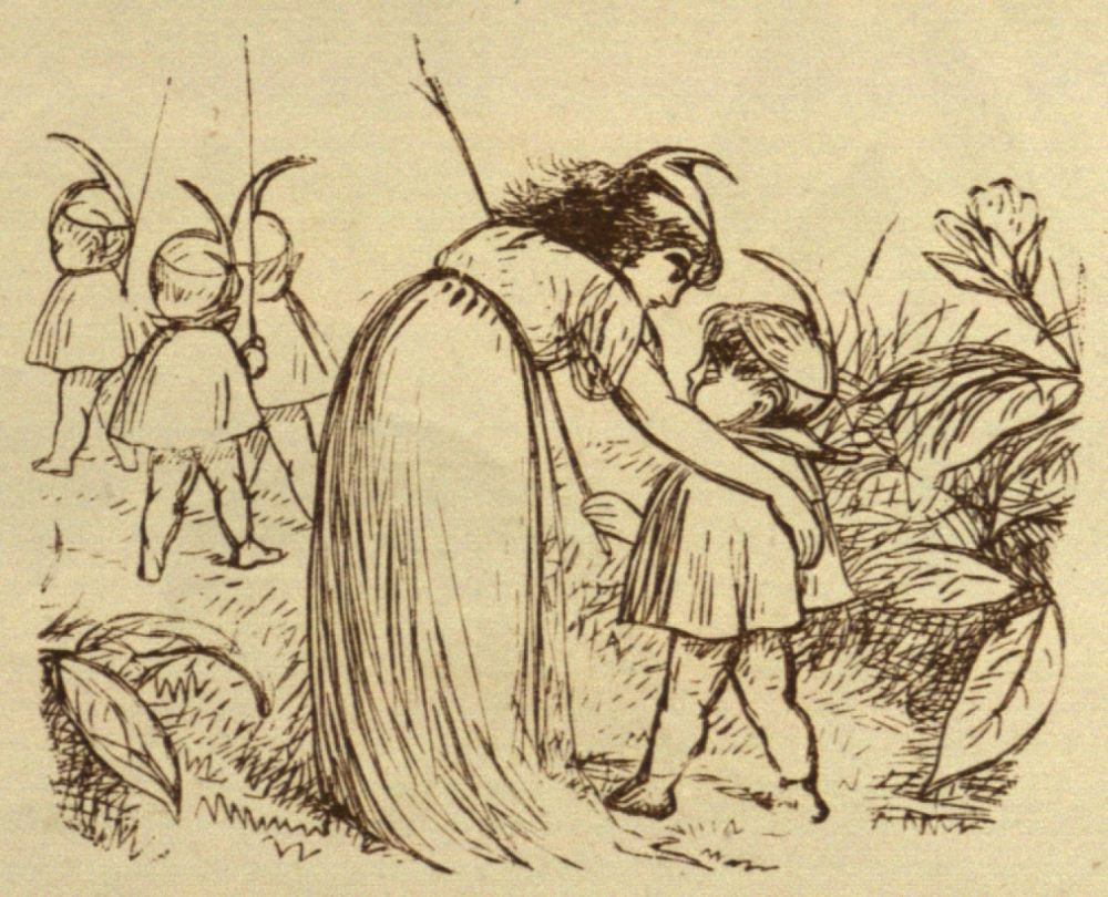 Then the poor mother and father cried dreadfully, but they saw there was no hope. It was better that the Princess should vanish away, than that she should be married to a horrid rude Dwarf, who rode on a Frog. So they sent for the Princess, and kissed her, and embraced her, and wept over her, and (gradually she faded out of their very arms, and vanished clean away) then she flew away on the bird’s back.