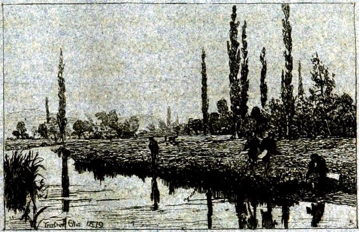 Rowing-men are usually swimmers, or they ought to be. To appreciate river life one must go to bed early and 33get up early; ten o’clock should be the latest hour at which to turn in, but after an extra hard day’s pull the sheets will be welcome by nine. To enjoy thorough fatigue one must do a hard day’s work in the open air. Up in the morning betimes, garments hastily donned, a sharp pull to the nearest bathing place, where one can dive in and have a few minutes delicious swim, and back to breakfast—and such a breakfast! Or possibly the way lies through the fields where the grass is knee-deep and saturated with refreshing dew: then off come shoes and socks, the trousers are well tucked-up, and one gets what a hydropath would 34possibly term a leg-bath—in reality a delicious, fragrant dew-bath, which, though more than cool, is mightily enjoyable and never seems to give cold.