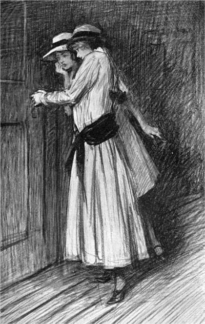 "Peccavi! I didn't see he was there," apologized Gwethyn, rescuing the canvas in question, and placing it in a position of greater safety on the mantelpiece. "Considering you've got absolutely every single chair littered with books, paints, and turpentine bottles, there really doesn't seem a spot left to sit upon," she continued in an injured tone.