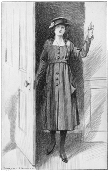 “I will go in! I tell you I’ve come to see Miss Raymonde Armitage, and it’s important. Miss Beasley there? All the better! I want to speak to her too. Will you kindly move out and let me pass? Oh, very well then—there!”