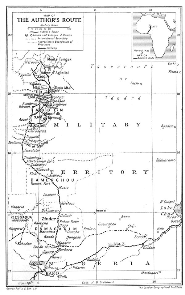 The country was that known as the Territoire Militaire du Niger of the Western Sudan, wherein, remote and in the midst of desolate seas of sand, lies the wild brooding mountain country of Aïr or Asben—which was the traveller’s goal.
