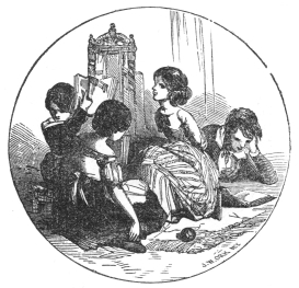 Next day all was joyful bustle and activity. The village children were up with the sun, and while the dew still lay upon the grass, the crystal drops sparkled on every tree and shrub, their merry voices mingled with the song of the skylark, and, like the bee, they were darting from flower to flower, wandering far and wide amidst banks of primroses, lilies of the valley, and dark blue harebells. Long did they pursue their pleasant toil, and in the evening they returned to it again, and not till twilight shades had fallen on the lovely valley, and the silver moon had risen to guide them on their way, were they to be seen trooping homewards, laden with green boughs and heaps of blooming flowers. It was but a short repose that lulled any of them to forgetfulness that night; they were up by the first streak of day to weave the garlands for their youthful queen, and the morning rose fair and bright upon their pleasant labours. Matilda for some time past had been giving them instructions in the art of weaving garlands, and many of them did great credit to their little mistress. She had a few days before constructed for them a crown which they were to imitate, and so well did they now succeed, that it seemed an equal grief to old and young that any thing so beautiful should ever fade.