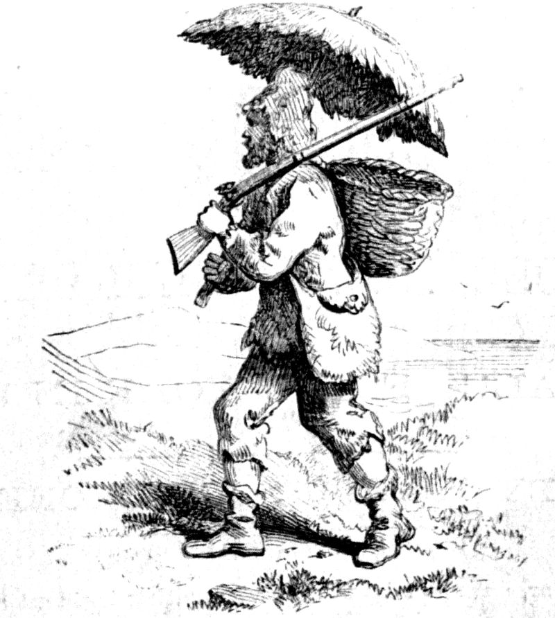 The foremost of the three hunters was an Englishman of about forty, habited in a threadbare suit of blue broadcloth, with drab gaiters buttoned up to his knees, and a hat sadly shorn of its original nap. His hunting apparatus bespoke the peculiar care which all of his country so abundantly bestow on their implements of sport. The other two were much younger, and dressed in home-made cloth, over which were loose frocks manufactured from the refuse flax or swingled tow. Both were handsome, but different in the cast of their features. The character of the first might be read in his gay air and springy step, as he followed close to the Englishman, dashing away the brushwood with the muzzle of his gun, and detecting with a quick eye the broken twigs or disturbed leaves which betrayed the course of the hunted bear. There was also something characteristic in the wearing of his dress, in the fox-skin cap thrown carelessly on one side of his superb head, exposing a mass of short brown curls around the left ear and temple, and in the bosom of his coarse frock thrown open so as to give free motion to a neck Apollo might have coveted. He was a hunter, who had occasionally visited the settlement of late, but spent whole weeks in the woods, professedly in collecting furs by his own efforts, or by purchase from the tribe of Indians encamped at the foot of the mountains.