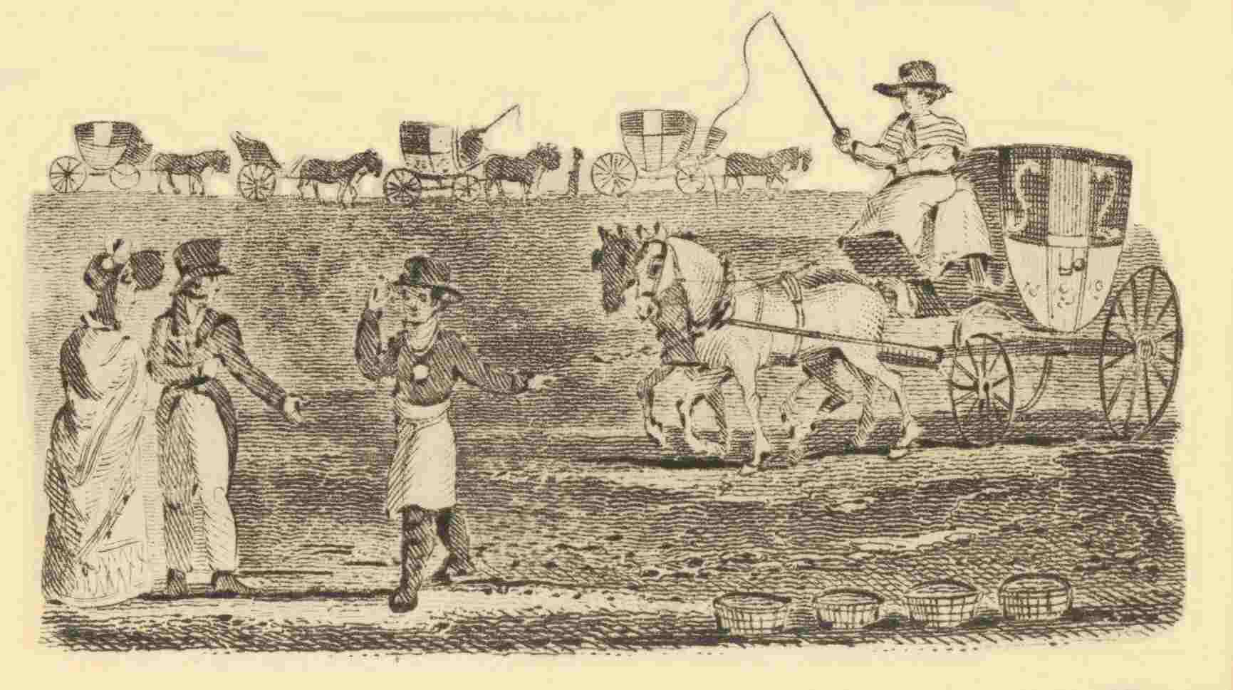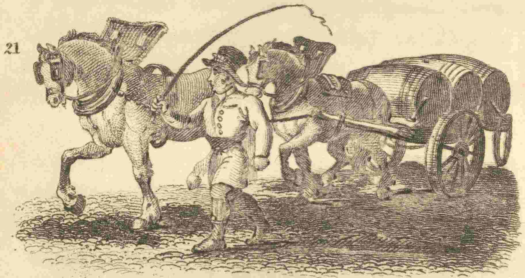 Nothing can exceed the noise, bustle, and hurry, of the streets of London, where carriages are passing backward and forward during the whole day, and most of the night. Carts are creaking under heavy loads of merchandise, mail-coaches are driving to and from the post-office with the letter-bags, and more than a thousand hackney-coaches and chariots are sometimes in motion at once on a rainy day. These are a great convenience in London; for, to whatever part of the town you may wish to go, you have only to beckon to a coachman, and