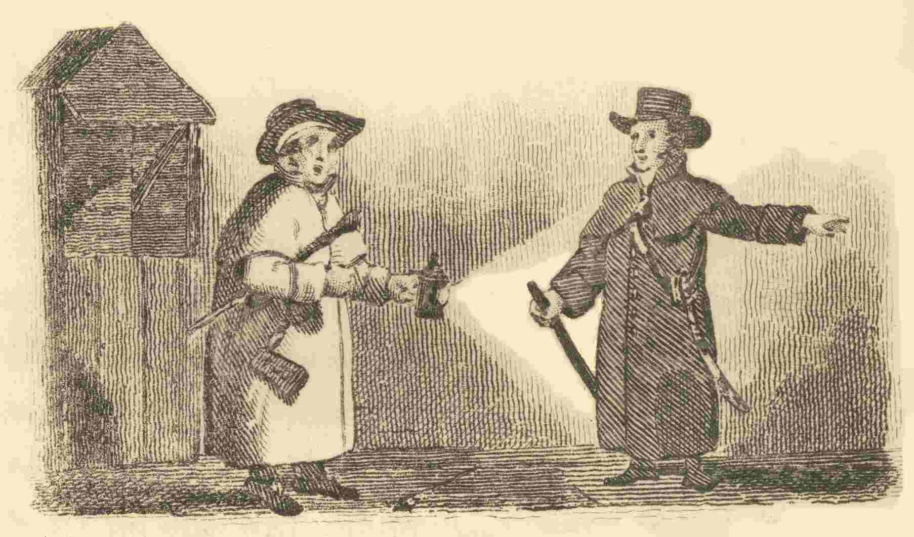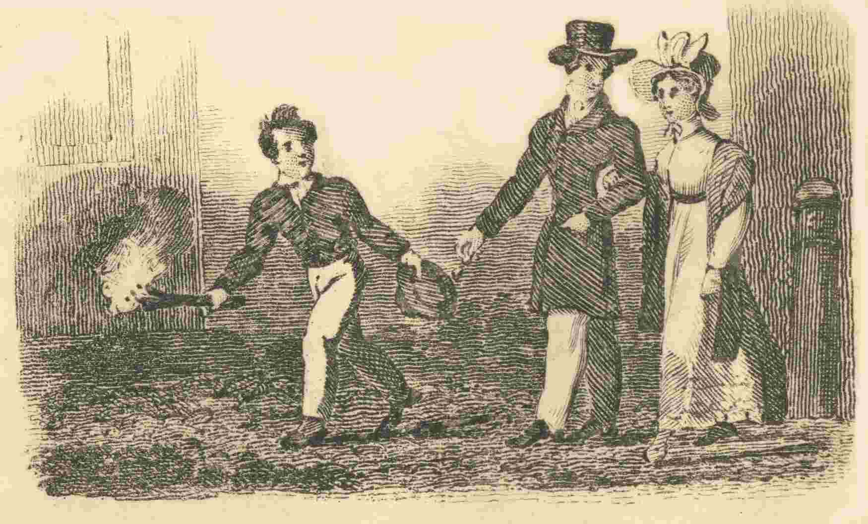That gentleman and lady have called to a coachman to take them home; and the waterman, who attends on hackney-coaches and their employers, seems to be enquiring where they are going. We would recommend every person who hires a hackney coach in London, to notice what number is on the door, which, on many occasions, has been found very useful.