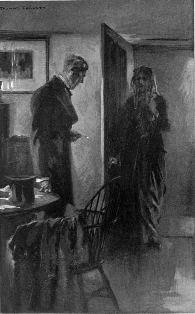 As the twilight deepened I rose from my seat and lit the gas. I must not be found skulking in the dark. Then I began to count the ticks measuring off the hour. If thirty minutes more passed without a rush from without, I might hope. If twenty?—if ten?—then it was five! then it was—Ah, at last! The gate had clanged to. They were coming. I could hear steps—voices—a loud ring at the bell. Laying down the pen I had taken, up mechanically, I moved slowly towards the front. Should I light the hall gas as I went by? It was a natural action, and, being natural, would show unconcern. But I feared the betrayal which my ashy face and trembling hands might make. Agitation after the news was to be expected, but not before! So I left the hall dark when I opened the door.