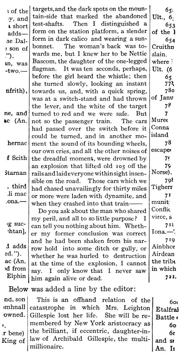 "If you know of anyone to whom this unexpected clearing of the Gillespie name will be especially gratifying, you are at liberty now to make the good news known. I'm off for police headquarters, there to begin those proceedings which will release Leighton Gillespie in time to meet the body of his wife at Communipaw."