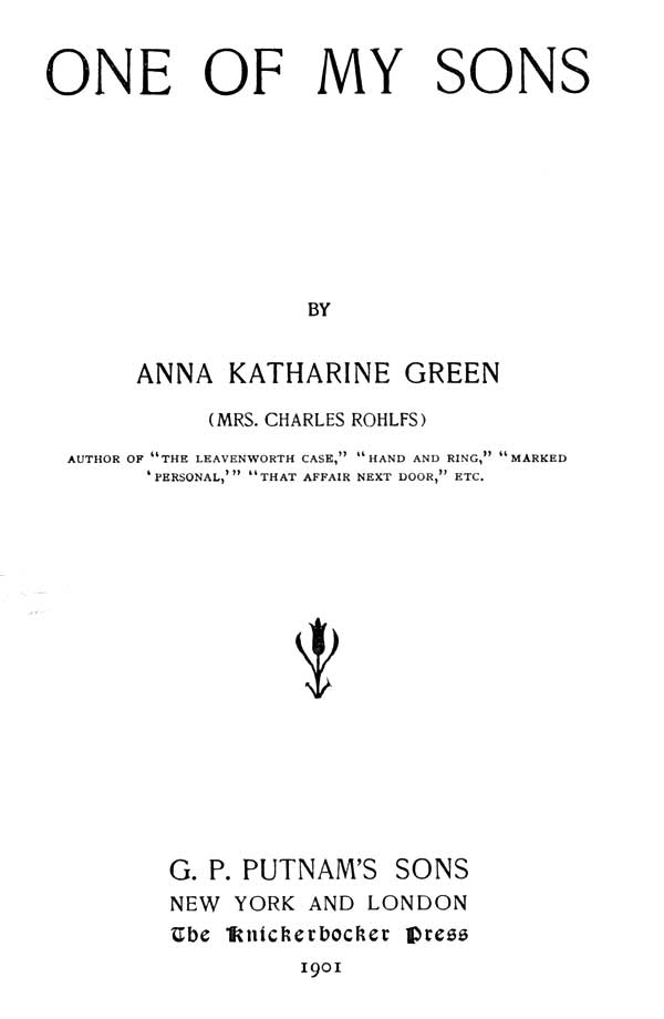 XVIII.—ONE OF MY SONS. 16°, cloth only, illustrated $1.50