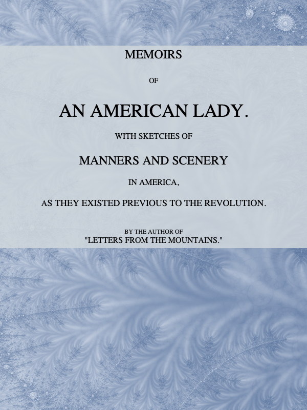 Among the scenes of peculiar interest the American traveller is, as it were, under a patriotic obligation to visit while abroad, may be mentioned the birth-place of Columbus near Genoa, Cave Castle, the mansion of the Washington family in the Wolds of Yorkshire, and the abode at Edinburgh of the venerable authoress of “Letters from the Mountains.” In acknowledgment of what we all owe to her, and as a heartfelt tribute of admiration, and affection for her talents, and virtues, the present work being out of print, the opportunity of republishing what so much identifies Mrs. Grant of Laghan with our country, is gladly seized upon by one who since one of those pilgrimages has long enjoyed the benign influence of her society and correspondence. The simple circumstances she relates of herself, and the gentle spirit of the whole work render it unnecessary to deprecate criticism; and the praise of Southey who pronounced the “description of the breaking up of the ice in the Hudson,” as “quite Homeric,” must bespeak for it a favourable perusal. As a picture, taken at the dawning of the Revolution, of the clouds which then passed along to have vanished otherwise forever, and as one in a series of works shedding light upon that momentous period of which the “Pioneers” is its natural successor, its reappearance must be a welcome event in the marshalling of American literature now in progress.