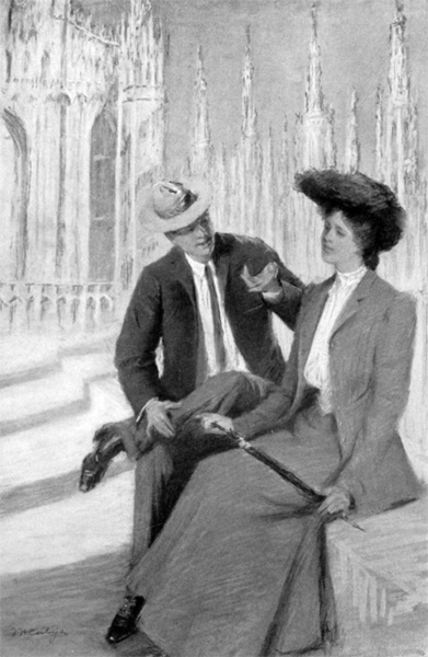 “I do not see how you and your Uncle John ever came to let her go off all alone like that,” Carter said, with a gloom that did not try to mask a terrible reproach; “she’ll be so awfully[4] liable to meet some foreigner over there and—and just marry him.” He threw up his cane as he spoke, intending to rap on the boarding by which they were that instant passing.