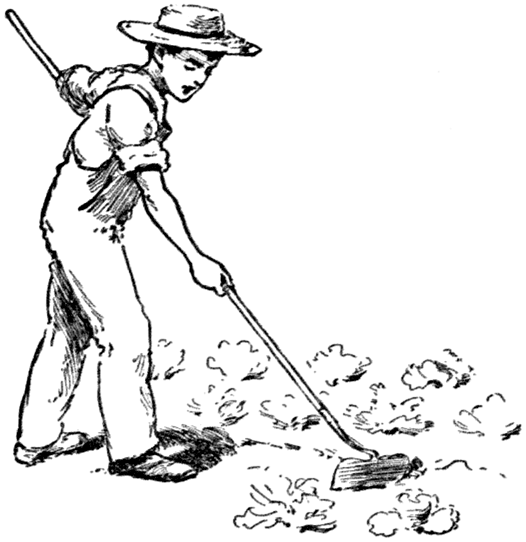 The Monday after school was out found Abbot in a pair of old overalls, hoeing away in his garden as if his life depended on getting rid of the last weed. Several of the boys stopped at the back fence to beg him to go fishing with them, but he gave them a laughing refusal.