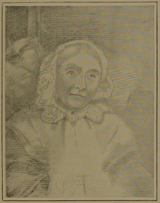 She bore her ninety years very lightly, and made a vision serene and noble, as will be seen from our picture, though that does not give the lovely youthful colouring in contrast with the silvery hair, and we read of the great expressiveness of her hands, which, a little more, perhaps, than is usual with Englishwomen, she used in conversation.