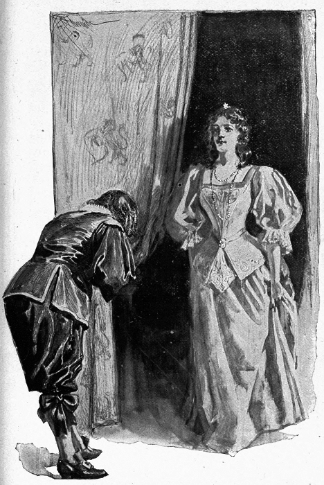 "The courtiers entertained me till the [pg 297] King came," she said, with a blushing laugh. And looking up at him again she whispered, "Yet I am glad that you lingered for a little."