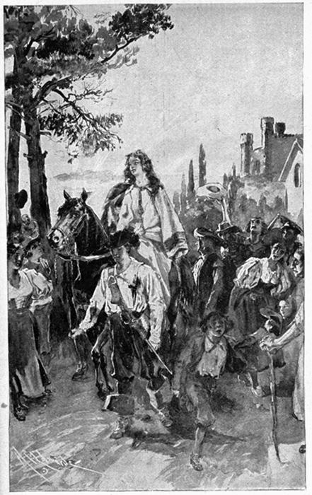 The men in the quarter went on with their work; the women moved idly to the doors; the girls came out into the street [pg 3] and clustered here and there, looking at the Prince. For although he was not so handsome as that scamp Rudolf, his brother, who had just come back from his travels with half a dozen wild stories spurring after him, yet Henry was a comely youth, as he sat on his chestnut mare, with his blue eyes full of impatience, and his chestnut curls fringing his shoulders. So the girls clustered and looked. Moreover Stephen the smith must come soon, and the sight of him was worth a moment's waiting; for he buried himself all day in his workshop, and no laughing challenge could lure him out.
