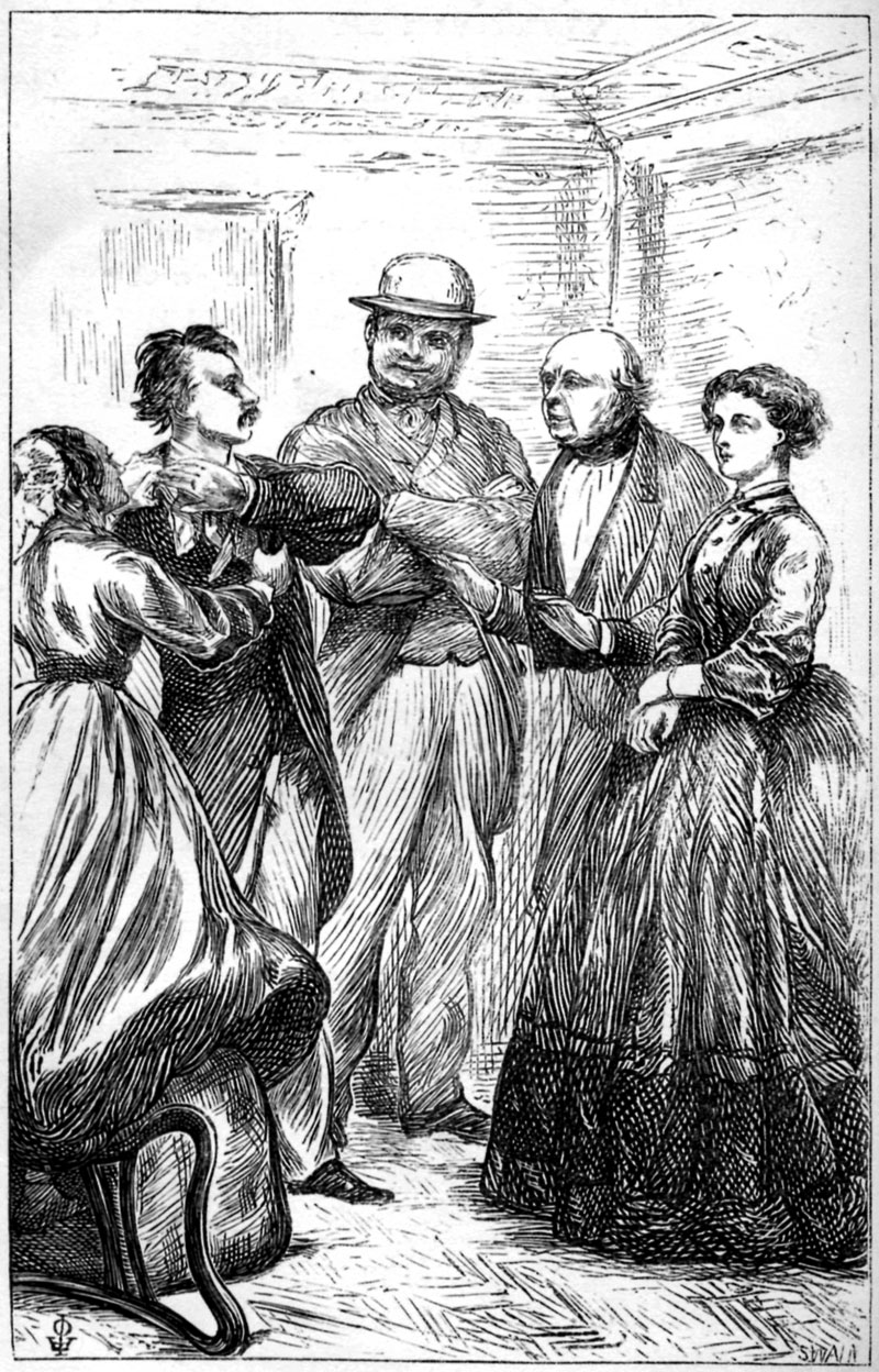 At this period one of his daughters was no longer under his own charge. Sarah Jane, the eldest of the two, was already Mrs. Jones. She had been captivated by the black hair and silk waistcoat of Mr. Jones, and had gone off with him in opposition to the wishes of both parents. This, she was aware, was not matter of much moment, for the opposition of one was sure to bring about a reconciliation with the other. And such was soon the case. Mrs. Brown would not see her daughter, or allow Jones to put his foot inside the butter-shop. Mr. Brown consequently took lodgings for them in the neighbourhood, and hence a close alliance sprung up between the future partners.