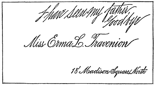 "Well, if you will listen to me and smoke your cigar in silence," says Southmead, for they have arrived at that stage of the meal. "Erma Lucille Travenion——"