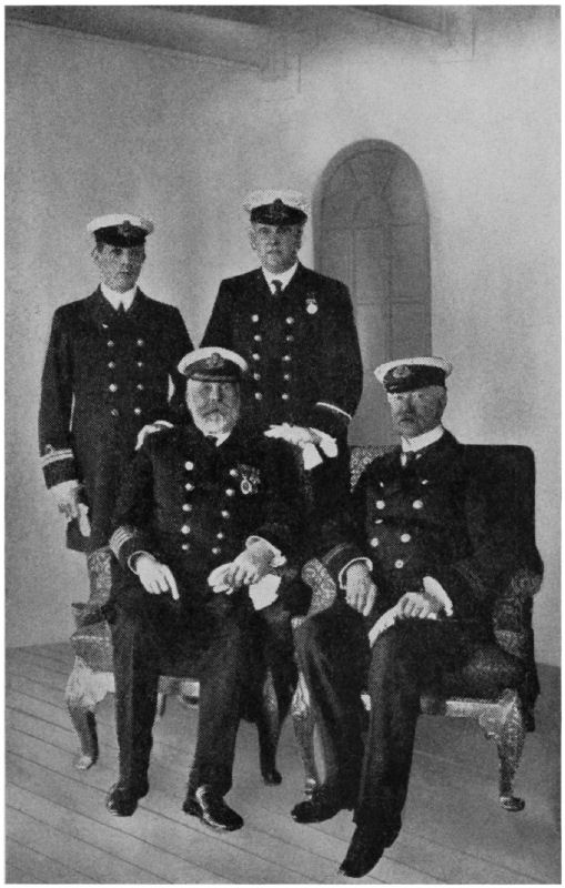 Considering it well to have a supply of blankets for use in the open boats exposed to the cold, I concluded, while passing, to make another, and my last, descent to my stateroom for this purpose, only [Pg 27] to find it locked, and on asking the reason why was told by some other steward than Cullen that it was done “to prevent looting.” Advising him of what was wanted, I went with him to the cabin stewards’ quarters nearby, where extra blankets were stored, and where I obtained them. I then went the length of the ship inside on this glass-enclosed Deck A from aft, forwards, looking in every room and corner for my missing table companions, but no passengers whatever were to be seen except in the smoking room, and there all alone by themselves, seated around a table, were four men, three of whom were personally well known to me, Major Butt, Clarence Moore and Frank Millet, but the fourth was a stranger, whom I therefore cannot identify. All four seemed perfectly oblivious of what was going on on the decks outside. It is impossible to suppose that they did not know of the collision with an iceberg and that the room they were in had been deserted by all others, who had hastened away. It occurred to me at the time that these men desired to show their entire indifference to the danger and that if I advised them as to how seriously I regarded it, they would laugh at me. This was the last I ever saw of any of them, and I know of no one who testifies to seeing them later, except a lady who mentions having seen Major Butt on the bridge five [Pg 28] minutes before the last boat left the ship.[1] There is no authentic story of what they did when the water reached this deck, and their ultimate fate is only a matter of conjecture. That they went down in the ship on this Deck A, when the steerage passengers (as described later) blocked the way to the deck above, is my personal belief, founded on the following facts, to wit: First, that neither I nor anyone else, so far as I know, ever saw any of them on the Boat Deck, and second, that the bodies of none of them were ever recovered, indicating the possibility that all went down inside the ship or the enclosed deck.