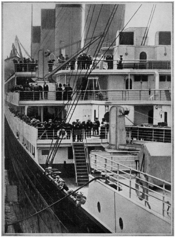 Towards evening the report, which I heard, was spread that wireless messages from passing steamers had been received advising the officers of our ship of the presence of icebergs and ice-floes. The increasing cold and the necessity of being more warmly clad when appearing on deck were outward and visible signs in corroboration of these warnings. But despite them all no diminution [Pg 4] of speed was indicated and the engines kept up their steady running.