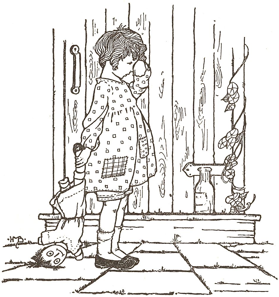 One of these children was a girl a year older than Peggy, called Mabel, and just as Peggy and her nurse came up to the cottage they saw Mabel banging the head of an old wooden doll on the hard road.