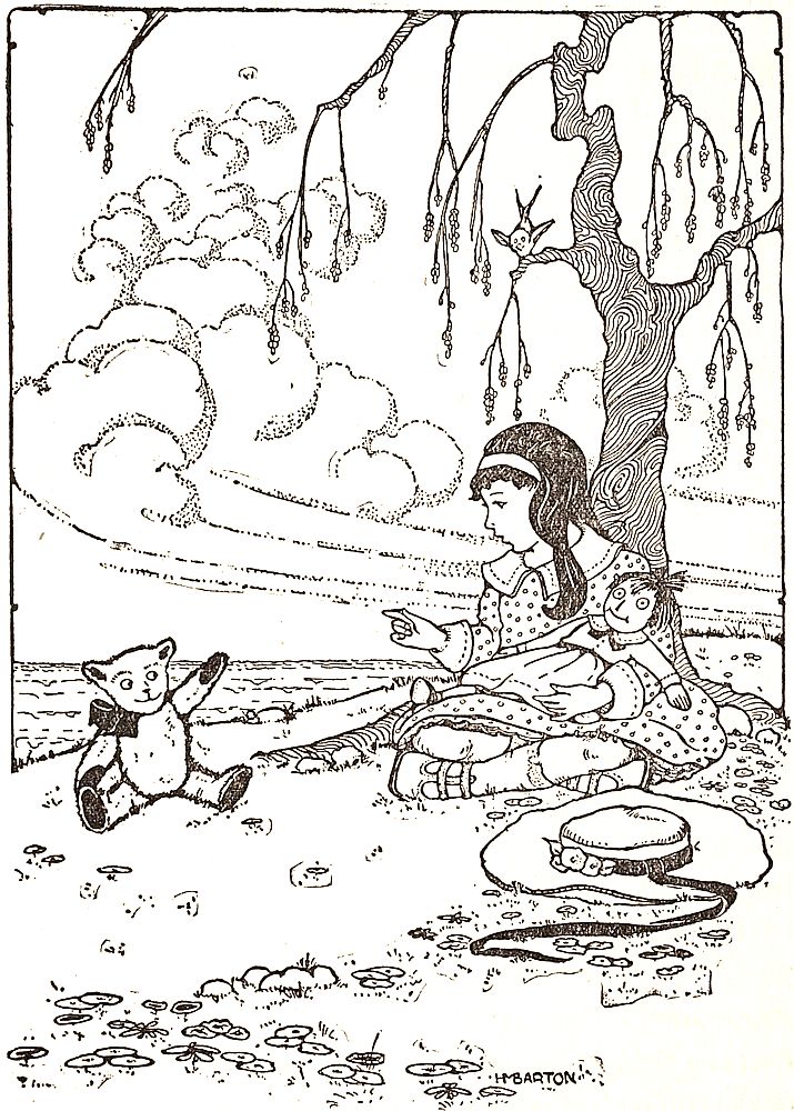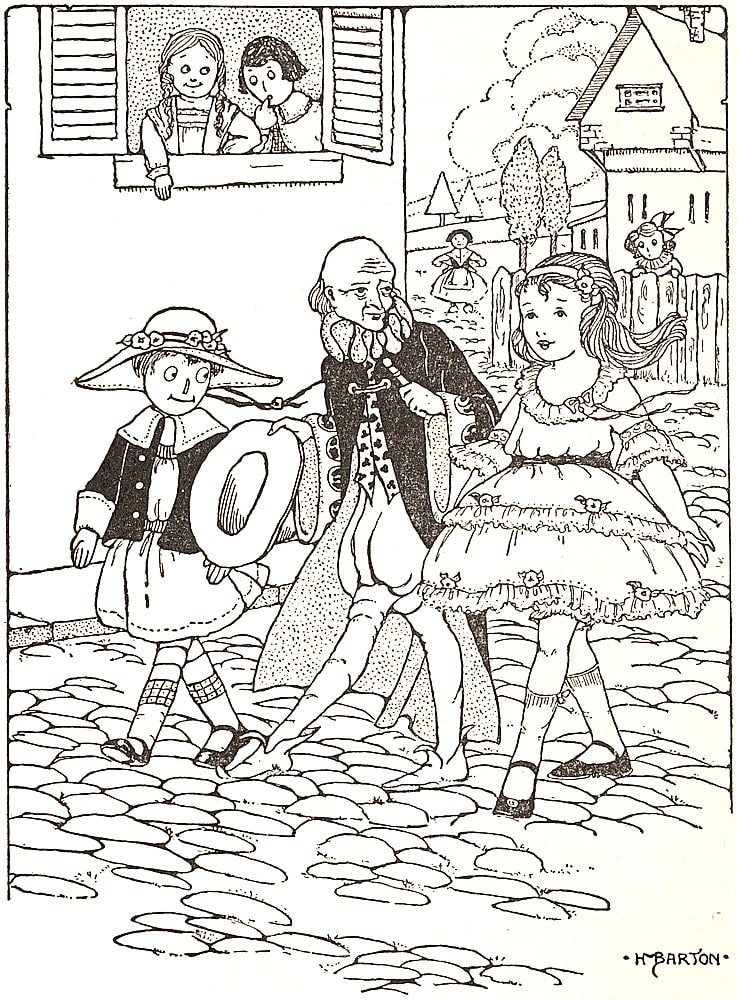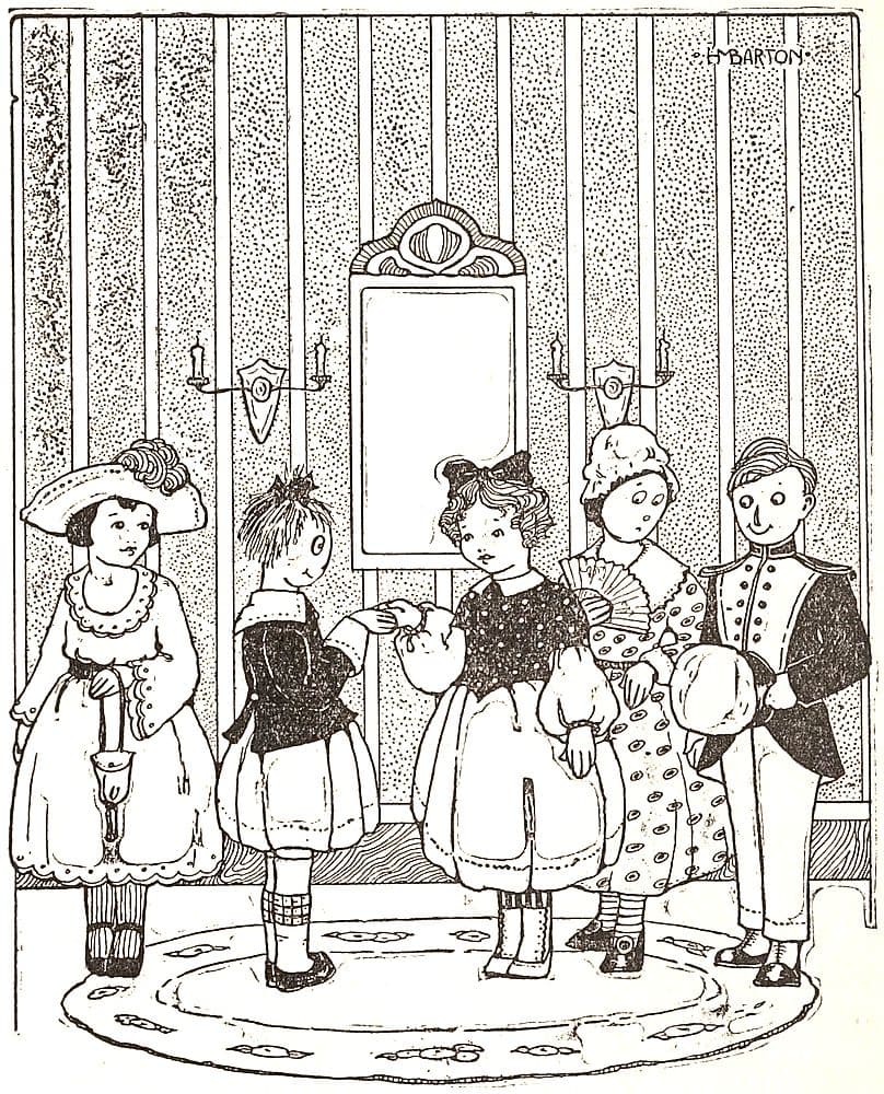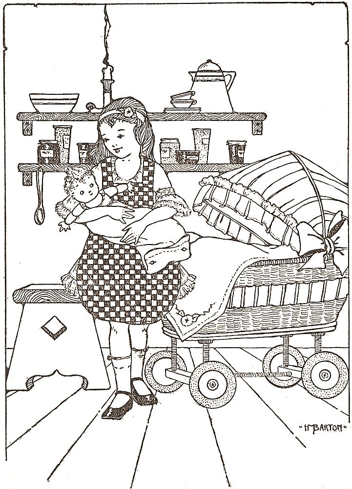 Fortunately, Peggy’s mother understood these things better than the nurse. The end of it was that Peggy was allowed to give Rose to Mabel, with all her clothes except the hat, which had come on the same birthday as she had, but had not belonged especially to her. And Mabel gave Peggy the wooden doll, but without its red flannel dress, which Peggy’s mother thought might contain germs.