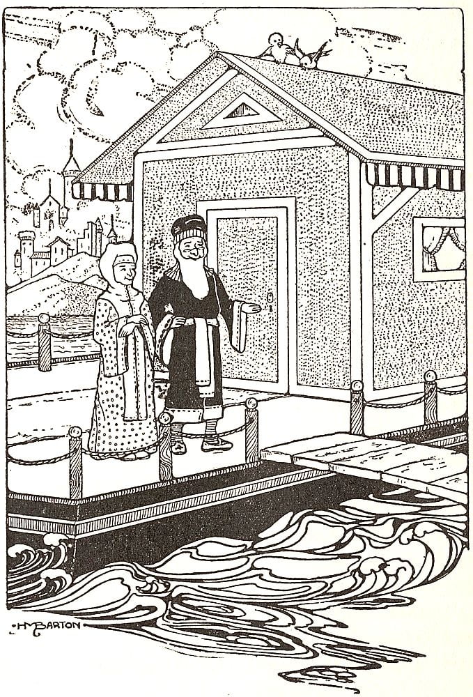 The place she used to go to had only one house near it. This was a large bungalow belonging to some friends of Peggy’s father and mother. It was built right on the beach, but there was a little lawn beside it, and on the edge of the lawn were two wooden figures that had been once figure-heads of ships. They were both ladies, and it was difficult to tell whether they were old or young, because one of them had had her nose broken off, and the other had lost every bit of paint[Pg 2] off her face. But there was something agreeable in the appearance of both of them, and Peggy used to think she would have liked to know them when they were leading a more active life, perched up in the very front of the ships to which they belonged, and travelling over the sea to all sorts of strange places. But they still looked over the sea, which was better than being broken up and burnt, with the rest of the ships; and of course they always looked in one direction, straight across the water to the big Island on the other side of it.