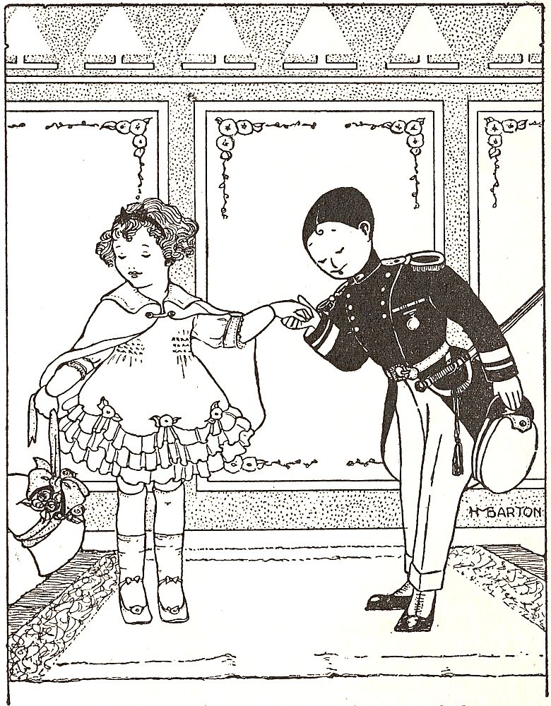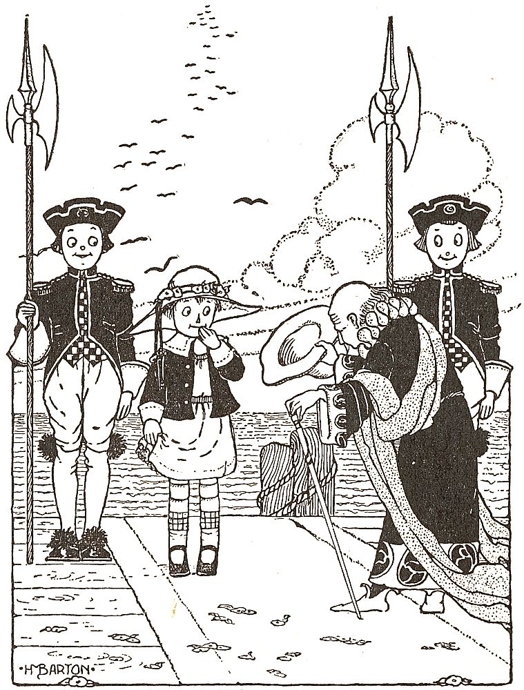 Then she turned to Wooden. “You have always had my respect and liking,” she said, “and I had intended to have appointed you today to a post of honour[Pg 273] about my person. I do so now, under the title of Lady-in-Waiting in Ordinary, and Extra Bed-doll of the Royal Chamber. Your duties will bring you into constant relationship with me, and I look forward with pleasure to making you my friend.”